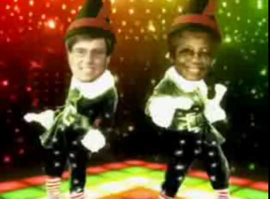 Pictured above: Commissioners Gene Valentino and Marie Young as dancing disco elves in a YouTube video spoof.