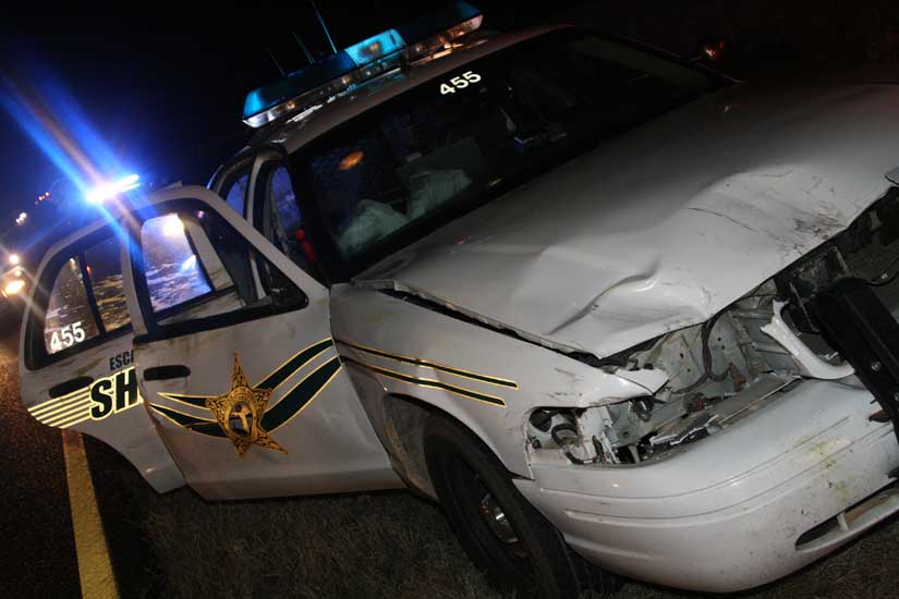 A crime scene unit from the Escambia County Sheriff’s Department was called to the scene to photograph the car and cow, a common practice when a county owned vehicle is damaged.