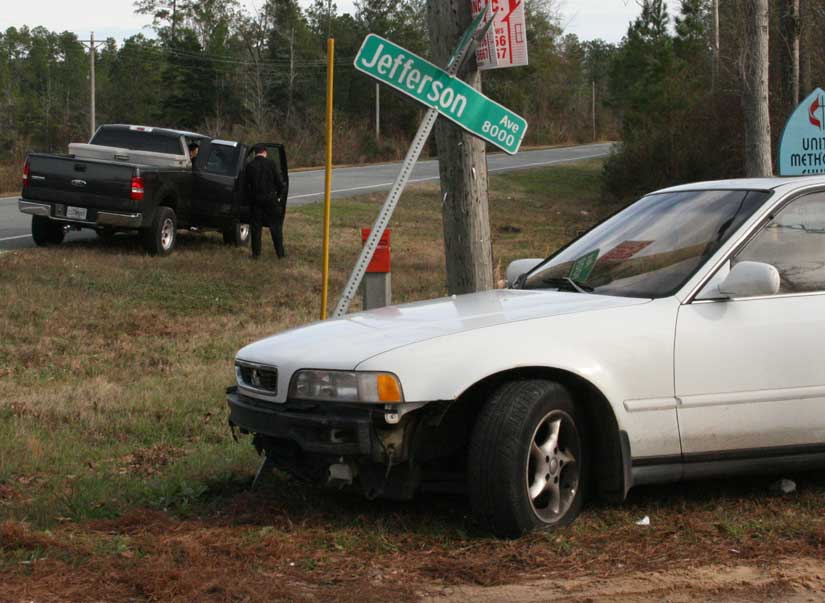 The accident happened at the intersection of East Highway 4 and Jefferson Avenue just before 1:30 Sunday afternoon. A pickup truck and an Acura Legend collided at the intersection. The Acura spun around, running backwards over a stop sign on Jefferson Avenue.