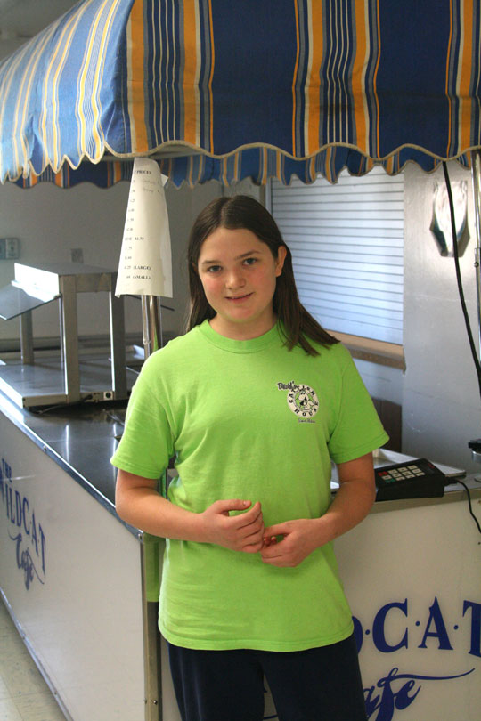 The school held a contest for a logo for a large lunchroom food service cart the school acquired from the Washington High School. EWMS tudents voted on which piece of artwork they liked best without knowing the name of the artist.