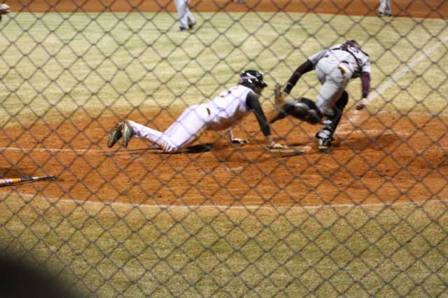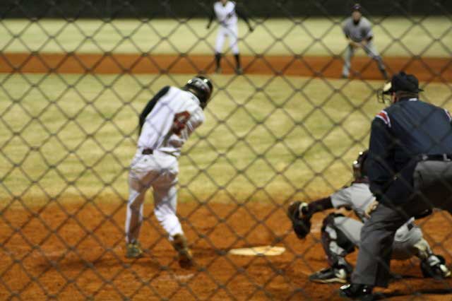 The Northview High School varsity baseball team shut out Pensacola High School Tuesday night in Bratt. The Chiefs beat PHS 5-0. Pictured above: Scooter Hamilton at bat. Pictured below: Brad Lowery hits for the Chiefs. Pictured bottom: Patrick McPherson scores. Submitted photos by Heather Leonard for NorthEscambia.com, click to enlarge.