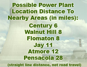 I agree this area can use the help on providing jobs for the future, but a nuclear power plant. I’D MUCH RATHER SEE A SOLAR OR A WIND FARM SITE. WOW!!!!! how things can change so fast even in this small community. WHY BUY UP ALL THESE PEOPLES LAND ASKING THEM TO LEAVE FROM WHERE THEY HAVE LIVED FOR MANY YEARS OR THE ONE WHO HAVE JUST BEGAN A NEW LIVE IN A NEW HOME? WHEN THERE’S A PERFECT SITE FOR THIS POWER PLANT TO USE. “THE CLOSED DOWN MCDAVID MILL OFF HWY 29″ THIS IS AN AREA ALREADY NEXT TO THE ESCAMBIA RIVER, EASY ACCES TO HWY 29, YOU AREN’T MOVING ANYONE OUT OF THEIR HOMES AND JOBS WILL BE PROVIDED AGIN FOR THOSE WHO GOT LAYED OFF. SOMETHING THAT ARE LOCAL OFFICIALS HAVE CERTAINLY THOUGHT OF I’M SURE. Good luck and GOD BLESS US ALL.