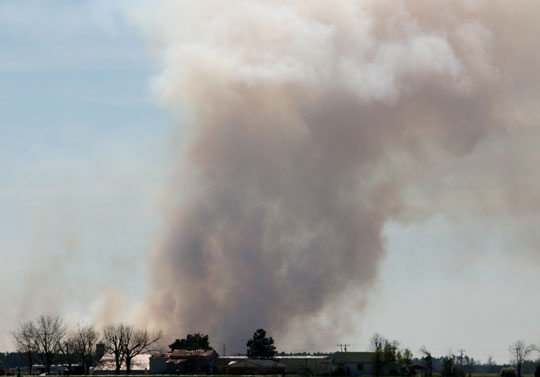 The Florida Division of Forestry conducted a 100 acre burn off Tungoil Road south of Walnut Hill Tuesday. A large plume of smoke was visible for miles from the fire, which was just off Highway 97. This photo was taken from several miles away at the intersection of Highway 97 and South Highway 99. NorthEscambia.com photo.
