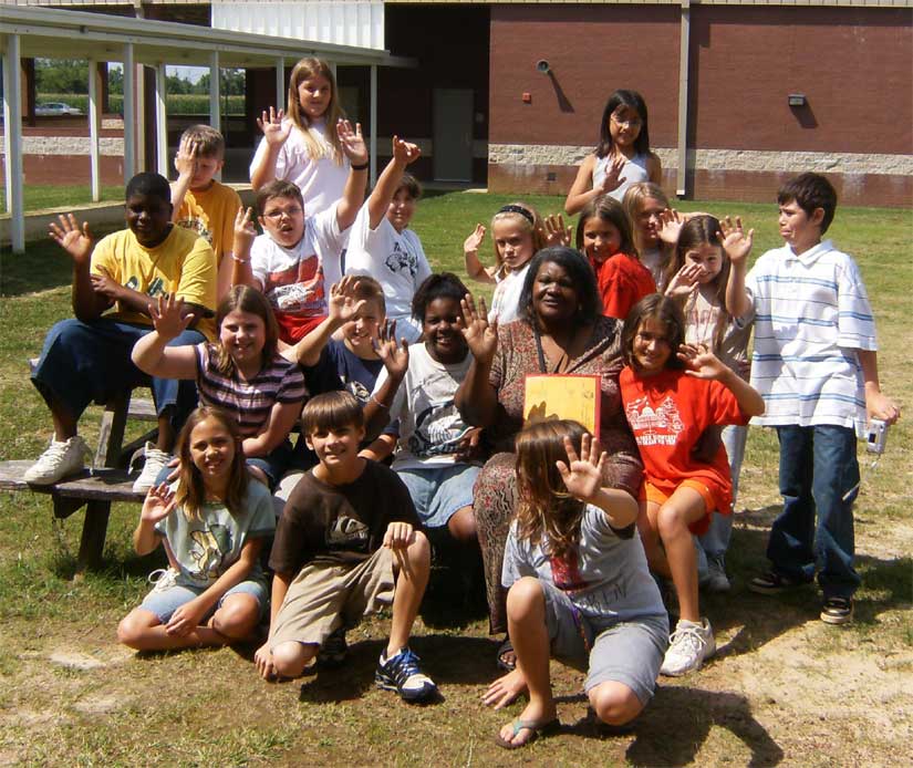 Pictured above: Fifth grade students planted a tree in memory of Mrs. Sharon Smith on Wednesday. Pictured below: Mrs. Sharon Smith and her fourth grade class wave goodbye about five minutes before their final walk to the buses on the final day of school last year at Molino Park Elementary School. NorthEscambia.com file photo, click to enlarge.