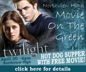 Northview High School’s Relay for Life Team will sponsor a Movie On the Green Monday evening. Admission is $5 for a hot dog supper at 6:00 p.m. Entertainment will be at no charge with a showing of the movie “Twilight” on Northview’s football field. Presale tickets are available at the Northview High office and tickets will be available for student purchase during lunches. Please bring a blanket or lawn chair. Sponsored in part by Audio Plus and Pepsi of Atmore. For more information, contact Mrs. Nall at 327-6681 ext. 251.