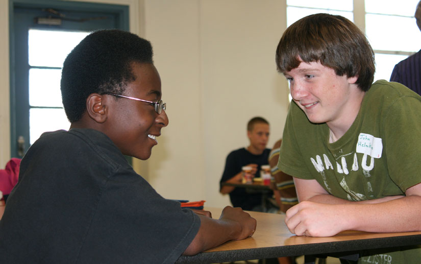 Pictured above: Carver/Century student Grady Floyd and Ernest Ward student John Helmken talk after lunch Thursday in the Ernest Ward cafeteria. NorthEscambia.com photo, click to enlarge.