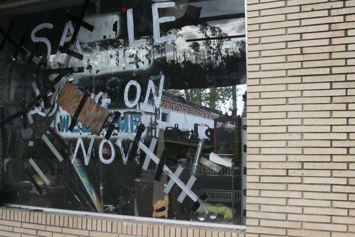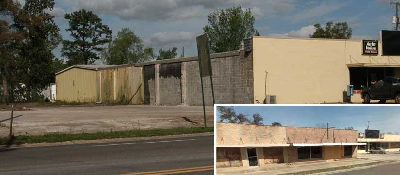 Pictured top and top inset: This building at 9510 North Century Boulevard was cited for several code violations, including structural deficiencies. In the top picture, it is evident that building is missing a roof and back wall. Pictured bottom inset: Mayor Freddie McCall asks Councilman Henry Hawkins to find the March date he claimed was on code citations. Pictured below: The property owner of buildings cited at 9500 North Century Boulevard had the buildings demolished. NorthEscambia.com photos, click to enlarge.