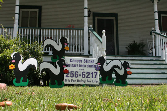 The Century Library Relay team will “skunk” someone for Relay. They will place the skunked sign and skunks at the location of your choice for $5. Once you’ve been skunked, the sign stays until you donate $5 to relay for life. If you never want to be skunked again, that takes a $10 donation to Relay for Life. To have someone skunked, call the library at at 256-6217.