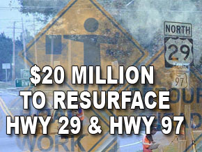 The Highway 29 resurfacing project includes 4.55 miles of the four lane highway from near Highway 97 to just north of Pine Barren Road. The contract on the project is expect to be awarded on August 26 of this year, with construction slated to begin as early as December 17. The repaving project is scheduled to be completed by early August, 2010.