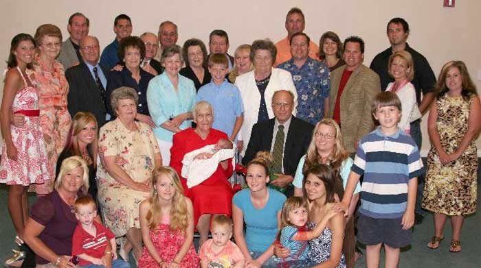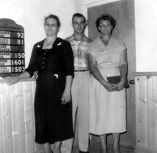 Pictured above: Nell Green and her family pose at a church service in her honor. Pictured below: Nell Green at the Walnut hill Assembly (now the New Life Fellowship) in an undated photograph. Pictured bottom: Nell Green at the Oak Grove Assembly of God. Submitted photos for NorthEscambia.com, click to enlarge.