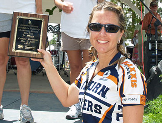 Northview High School teacher Natalie Nall was the female division winner in the nearly 30 mile Habitat for Humanity bike ride from Brewton to Atmore.