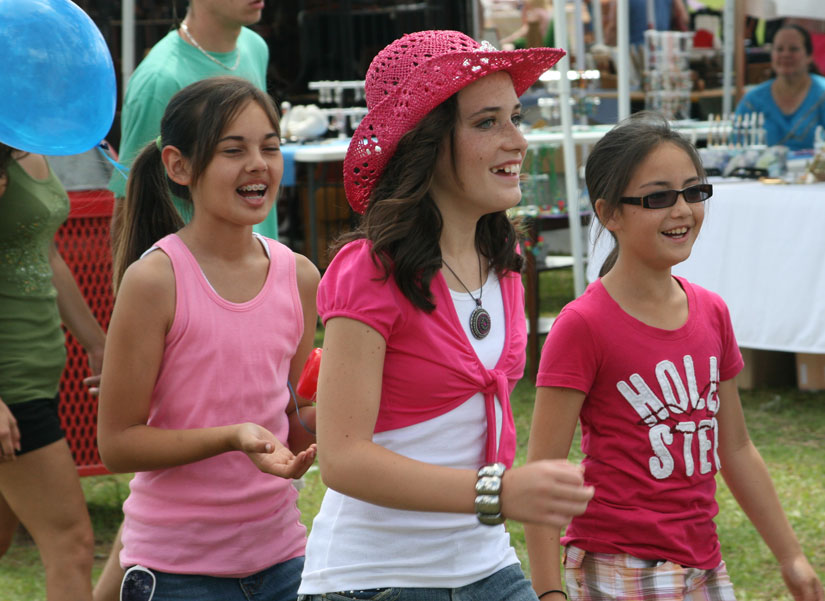 Pictured above: Bratt Elementary School fifth graders Dariane Guy, Lorri Harrell and Jadlyn Agerton enjoy Mayfest in Atmore Saturday morning. NorthEscambia.com photo, click to enlarge.