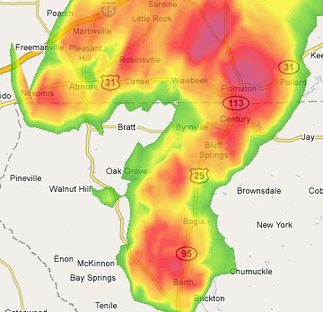 Hail was on Hwy 29 between Molino South to Muscogee Rd also. I left Northview High School just before 8pm Monday nite and drove south at the very same timing the radio reported the storm going through Molino to Cottage Hill. It was probably nickle size hail on my car the whole trip with horrific lightning, thunder and heavy rain. Very scared! But I couldn’t see enough to pull over for fear of falling into a ditch.
