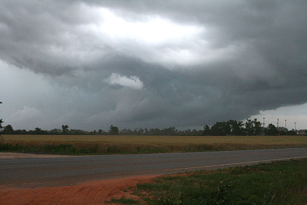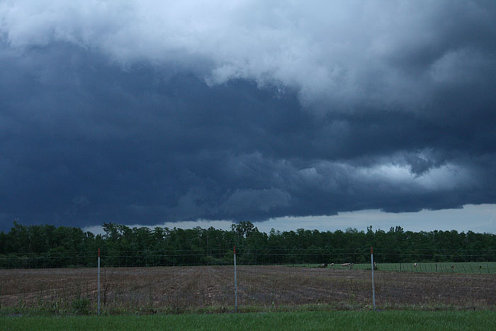 Pictured above: The storms approaching Flomaton as seen from Highway 4 near Northview High School. Pictured inset: The radar image at the time the top photo was taken. Pictured below: Two more photos of the storms taken from North Highway 99 near Bratt Elementary School. NorthEscambia.com photos, click to enlarge.