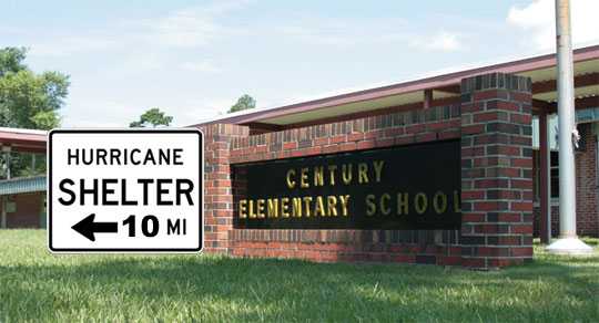 The next nearest Escambia County public hurricane shelters to Century are located at Northview High School and Molino Park Elementary. Northview has a hurricane shelter capacity of 1,260. Molino Park has space for 2,225 evacuees.