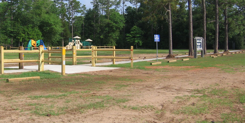The Barrineau Park Community center recently received 37 new parking spaces installed by the Escambia County Parks and Recreation Department. A new walkway was added to provide a clear and level means of getting to and from the building from the parking area. A driveway was added to allow for parking on both sides of the sidewalk. Split rail fences were used to protect the play area, identify the driveway and to generally beautify the park. Submitted photo for NorthEscambia.com, click to enlarge.