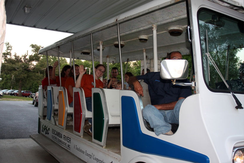 Pictured above: Ray’s Chapel Baptist Church Pastor Nathan Brown at the church’s VBS this week. Pictured below: More scenes from the Ray’s Chapel VBS, including the EREC “train”. Submitted photos by Ramona Preston for NorthEscambia.com, click to enlarge.