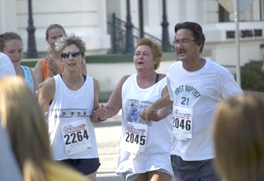 Angie was diagnosed with a brain tumor in September 2007, and was left legally blind. She ran the Firecracker on July 4, 2008, with husband Earnie White and best friend Jo Nolin holding her arms, guiding her across the finish line. It took her just less than an hour, almost 50 minutes behind the leader. Friends cheered and shouted her name as she crossed the finish line at number 732 out of 736 runners.