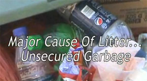 The first video addresses preferred trash bagging techniques in an effort to prevent wind-blown garbage and recyclables from littering the streets of Escambia County.