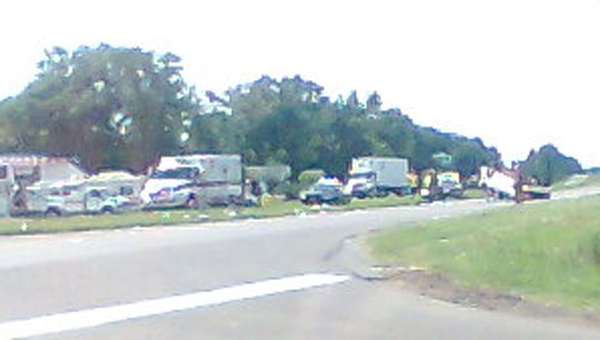 Pictured top: Broxson’s SUV. Photo courtesy WEAR TV 3 for NorthEscambia.com, click to enlarge. Pictured inset: a cellphone photo of the scene submitted by Samantha Rigby for NorthEscambia.com, click to enlarge.