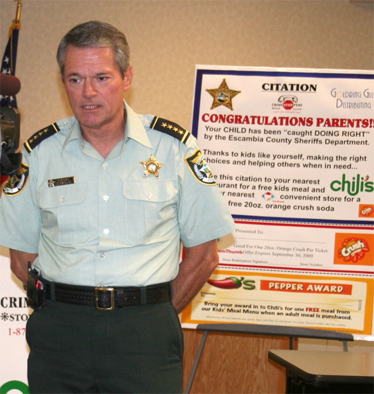 Pictured above and below: A program to ticket children in Escambia County for doing good deeds was announced Tuesday by Escambia County Sheriff David Morgan.