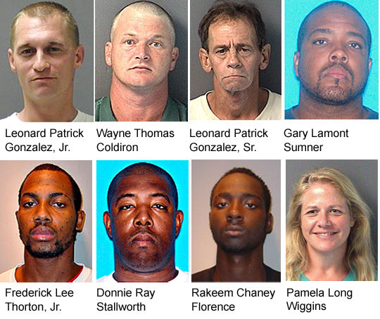Leonard Patrick Gonzalez, Jr., Leonard Patrick Gonzalez, Sr., Wayne Thomas Coldiron, Gary Lamont Sumner, Jr., Frederick Lee Thornton, Jr., Rakeem Chavez Florence and Donnie Ray Stallworth will each be arraigned at 9:00 Thursday morning on two counts of first degree murder and one county of home invasion. Judge Joel Boels ordered that all defendants be held without bond in the Escambia County Jail.
