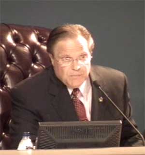 Pictured: Commissioner Gene Valentino at Thursday night’s Escambia County Commission budget hearing.
