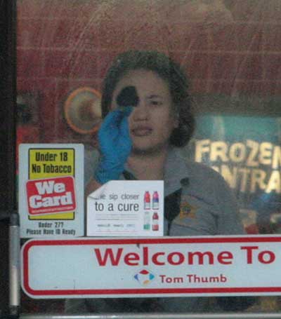 Pictured top: An Escambia County Sheriff’s Office crime scene technician dusts the front door of the Tom Thumb in Molino for fingerprints following a morning robbery. Pictured below: The Tom Thumb in Molino was robbed about 6:10 Monday morning. NorthEscambia.com exclusive photos, click to enlarge.