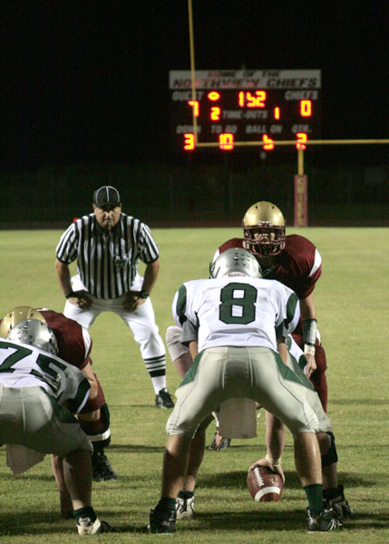 Freshman La’Mikal Kyles took the kick at the 20 for Northview and headed up the side all the way to Seahawks’s 25 for a gain of 55. Lowery to Grice, Grice up the middle for a gain of four. A Lowery pitch to Jackson put the Chiefs at the 16 for third and a short two. Yuhasz, behind the blocking of John Sellars, picked up a first down at the 12 with 4:55 in the half. A pass to Jackson was incomplete. Jackson redeemed himself on the next play, down to inside the one. A false start penalty put the Chiefs at first and six. A Lowery pass to Yuhasz picked up a yard. The Chiefs fumbled on the next down, and the Seahawks recovered on the five.