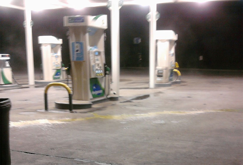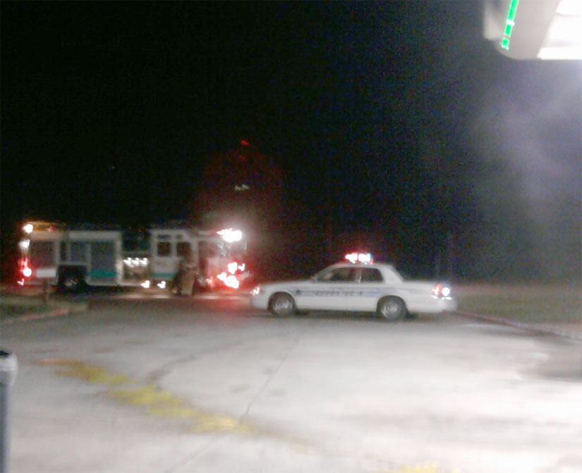 NorthEscambia.com has obtained cell phone photographs taken shortly after a hazardous materials incident began at an Atmore gas station Saturday night. The photographs appear to show smoke rising from the unknown acid as the first emergency responders arrive.