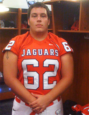 Dustin James, who graduated seventh in his class at JHS, is a 6-foot 290 pound member of the Jaguars’ offensive line. He is on the scout team this year, and he has had several tackles so far this season.