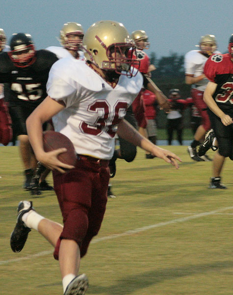 Chance Jackson, a sophomore tried to head up the middle to the end zone, but fell short. A movement call against the Chiefs backed them up to the Jags’ six. Jamie Gafford sweep to the right side picked up about two for the Chiefs.