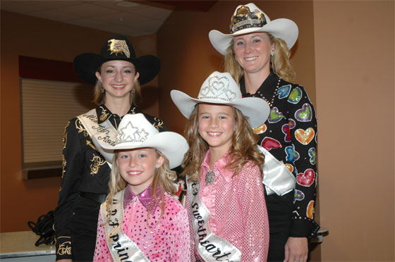 Pictured above: Miss Teen Rodeo 2010 Kricket Wise. Pictured below: (top, L-R) Miss Teen Rodeo 2010 Kricket Wise, Miss Rodeo Florida 2010 Heather Hall of Kenansville, FL; (bottom, L-R) 2010 Miss Rodeo Florida Princess Shelby Kirton of Okeechobee, FL; 2010 Miss Rodeo Florida Sweetheart Caitlin Harris of Saint Cloud, FL.