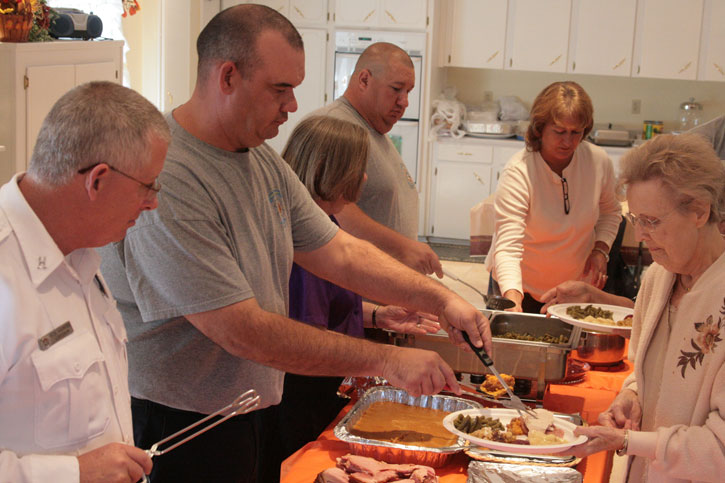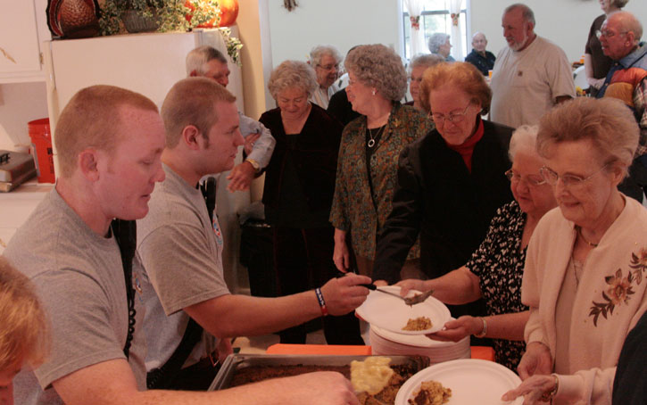Beulah Chapel Assembly of God held its annual Community Thanksgiving Lunch for Byrneville senior citizens Thursday. Dozens of seniors attended the lunch, which featured a full Thanksgiving menu of turkey, dressing and a variety of side dishes and desserts. Firemen from the Century Station of Escambia Fire Rescue, including the crew of Engine 519, assisted church members in serving the lunches. NorthEscambia.com photos, click to enlarge.