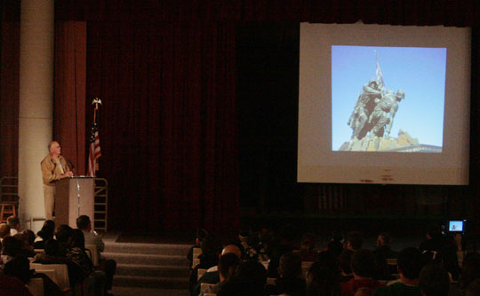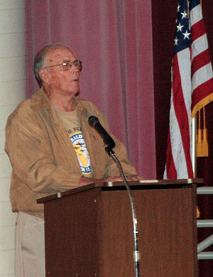 Pictured above: Veteran Billy G. Ward explains photos taken for NorthEscambia.com on his recent Emerald Coast Honor Flight trip to Washington. Ward was the guest speaker at Northview High School’s annual Veterans Day program held Wednesday. NorthEscambia.com photos, click to enlarge.