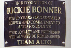 Rickie, it was indeed a pleasure to work along side of you these past 10 years at Alto Products, I know everyone is going to miss you when you leave, you have been a great asset to the company, your shoes will be hard to fill. May God bless you and Lila.