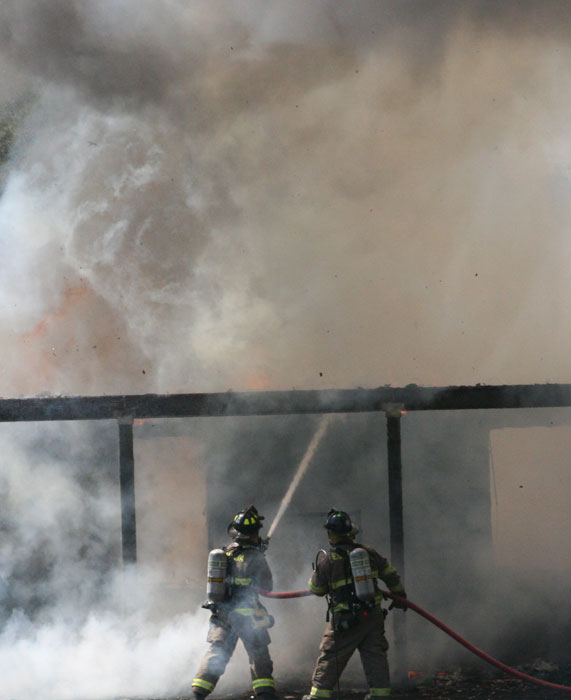 Firefighters battle a blaze that destroyed a home on Pilgrim Trail West in Molino.