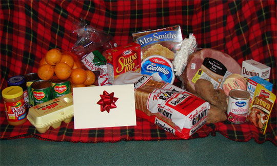 That enabled the float crew to present a total of 13 families with Christmas dinners made up of ham, sweet potatoes, brown sugar, green beans, corn, stuffing, gravy, dessert, rolls and cranberry sauce. The donations were so extensive they were able to add a loaf of bread, jars of jelly and peanut butter, bags of oranges and apples, whipped cream, marshmallows, butter, an assortment of candies, and a blanket for each family. Included with each gift box was a Christmas card giving well wishes.