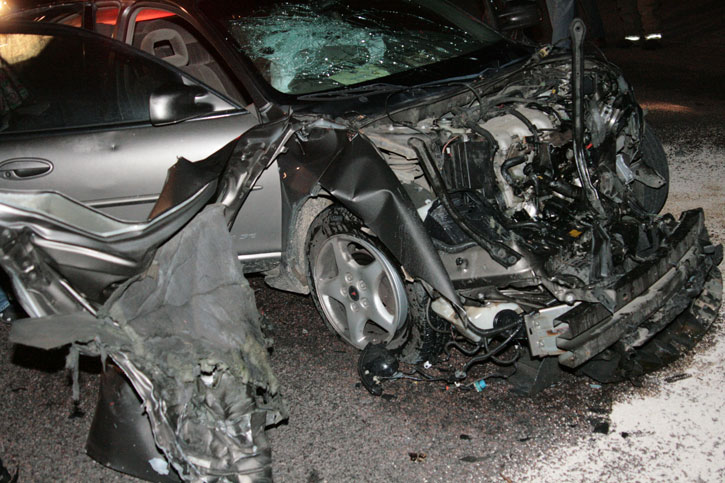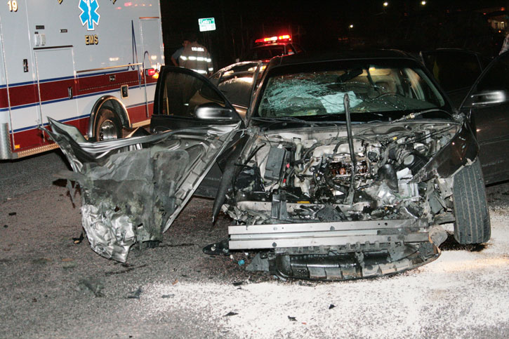 Pictured: Three people, including two children, were injured Tuesday night in McDavid when this car collided with an 18-wheeler. NorthEscambia.com photos, click to enlarge.