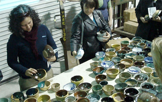 Pictured top: Selecting a handmade bowl at a “Fill a Bowl for Manna” event. Pictured inset: One of about 500 unique bowls donated by faculty and students from PJC’s Arts Department and the public who attended the companion “Throw a Bowl for Manna” event co-hosted by PJC. Submitted photos for NorthEscambia.com, click to enlarge.