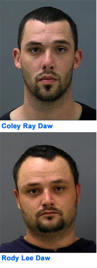 Coley Ray Daw, 24, of Gandy Lane, Century, and Rody Lee Daw, 25, of Palafox Street, Flomaton, are both facing felony charges of robbery with a firearm and grand theft.