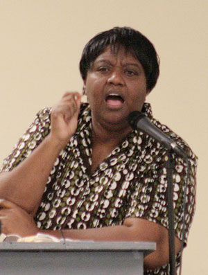 Pictured top and bottom: Residents gathered in Century Monday morning to remember Dr. Martin Luther King, Jr. Pictured inset: Corma Eleise Robinson Gaines, guest speaker at the annual event sponsored by the Century-Flomaton Improvement Association. NorthEscambia.com photos, click to enlarge.