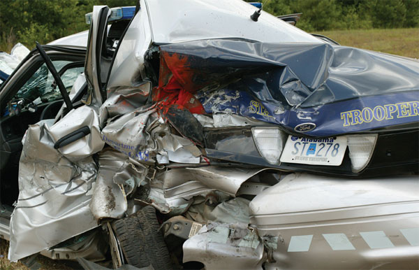 Pictured above: An Alabama State Trooper in Dallas County was seriously injured in this crash last year. Courtesy photo for NorthEscambia.com, click to enlarge.