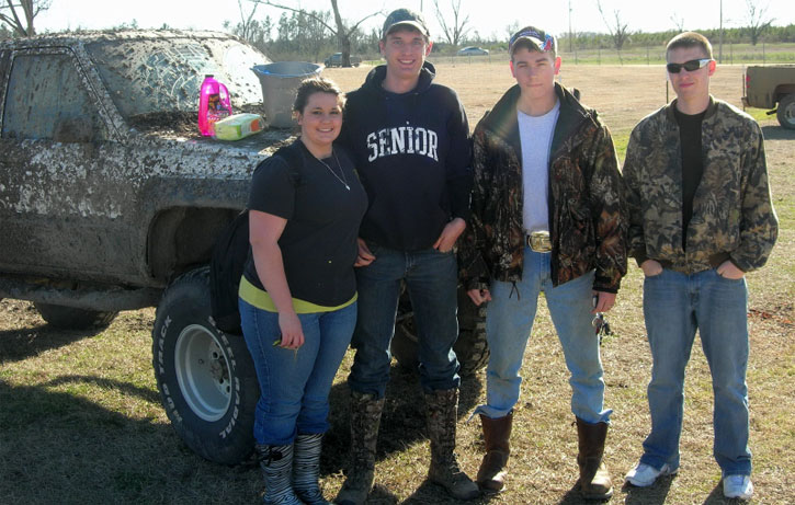 Pictured top: A dirty truck. Pictured below: (L-R) Allie Vidak, Dirty Truck winner Gavin Hinote, Brandon Chambless and Ryan Busbee. NorthEscambia.com photos, click to enlarge.