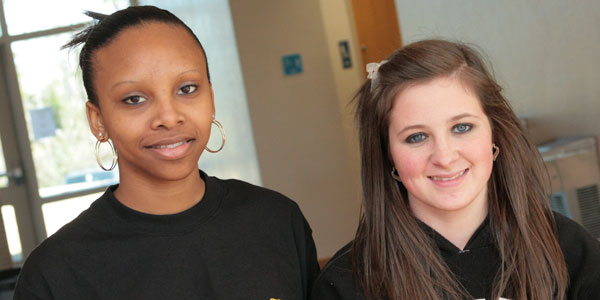 Pictured top: Minority Culture Club members perform the human video “Lean On Me” during a Black History Month program at the school Thursday morning. Pictured below: Brandi Boggan and Jordyn Dunsford were Northview High School winners in the Cox Communications “Making A Difference: A Tribute to An African American in History” essay contest. NorthEscambia.com photos, click to enlarge.