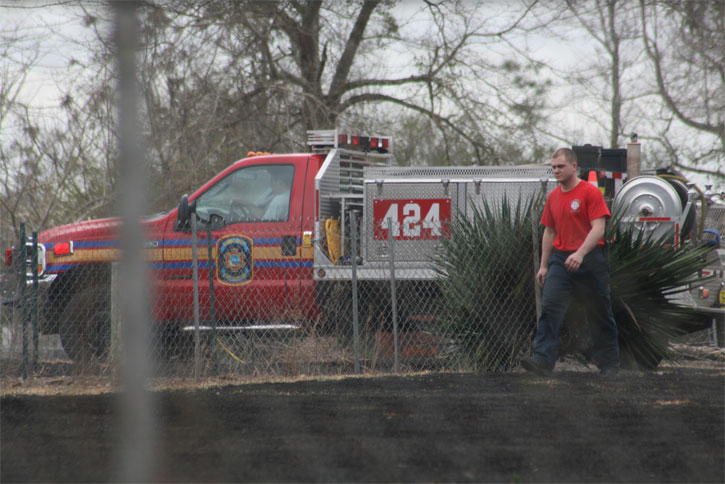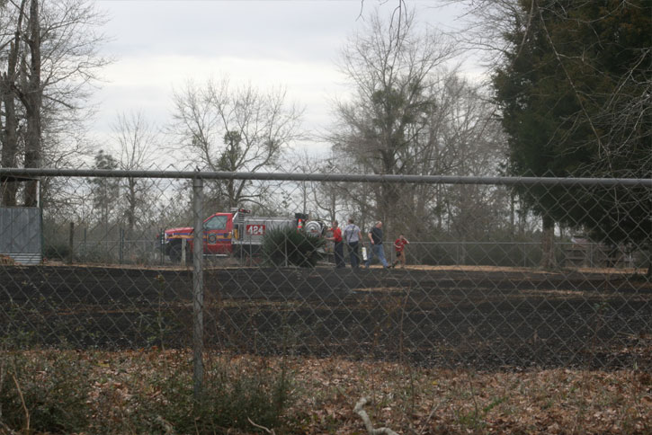 Quick work by two area fire departments kept a brush fire from spreading to nearby two structures this morning in the Quintette area. The Cantonment and Molino stations responded about 11:30 a.m. to the half-acre fire on Frank Ard Road. Submitted photos by Kristi Smith for NorthEscambia.com, click to enlarge.