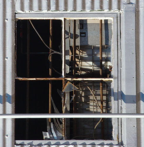 Pictured top: This tanker full of saltwater exploded Wednesday morning in Flomaton. Pictured inset: The end cap of the tanker was blown off. Pictured below: The top lid of the tanker was damaged. Pictured below: Windows were blown out a contracting company. Submitted photos by Alisa Hart for NorthEscambia.com, click to enlarge.