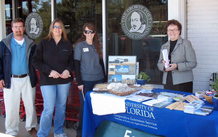 Over a six hour period, the EscaRosa Young Farmers and Ranchers introduced more than 100 people to our counties’ rich agricultural heritage and focusing on the positives of agriculture. Dorothy Lee, Escambia County Family and Consumer Science agent, developed a “Grocery Shopping List and Tips” to help people stretch their food dollar, while other members of the group tempted passersby with peanuts, “Test your Ag Knowledge game”, “I met a Farmer” stickers, and hosts of other goodies.