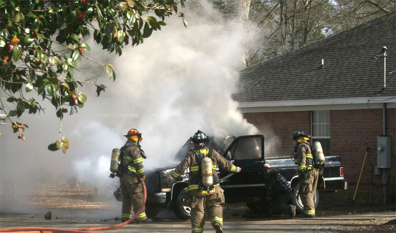 Fire stations across the area were dispatched to the 4700 block of Richardson Lane about 4:25 p.m. A Chevrolet Silverado pickup truck was fully involved in fire next to a house when they arrived.
