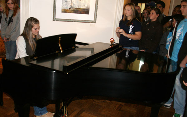 Pictured above: Youth Tour participants on the steps of the capital and in front of the Florida Supreme Court. (Front, L-R) Leely Trevino, Alexis Harris, Sarah Killam, Allie Bryan, Sarah McLean, Courtney Penton and Jami Wessel. Back row: Anna Hollingshead, Ashley Stokes, Josh Scott, Nick McMellon, Justin Poley, A.J. Lambert and Taylor Fisher. Pictured inset: Sarah Killam plays the piano in the Governor’s Mansion. Pictured below: Jami Wessel, Courtney Penton and Sarah McLean participate in a mock session in the House of Representatives. Pictured bottom: EREC Youth Tour participants in Tallahassee. Submitted photos for NorthEscambia.com, click to enlarge.